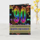 90th Birthday with rainbow bubbles and fireworks Card