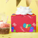 90th Birthday wrapping paper with custom message. Can also be used for 10 20 30 40 50 60 70 80th celebration. Customisable text, age number and background colour. Cheerful design with coloured balloons; red yellow blue green purple yellow orange aqua. Fun for ninety year old men and women. Unique ninetieth Bday party gift wrap for him or her.