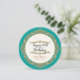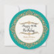 NOTE: THIS IS A FLAT PRINTED design, there are no raised elements, jewels or gold metallic inks used. COLOR PALETTE: teal turquoise pool blue, white and golden metallic look DESIGN COLLECTION: In a round, circular design, this invitation has a beautiful golden filigree circlet border with a three dimensional look and feel sets off the front side of the invitation that has the text, "Happy 90th Birthday." The design is augmented with with diamond like jewels & scroll work and is personalised with the your party celebration information which is easily customised using the template fields provided. There are coordinated items available to match this invite to make your party decor easy to create!
