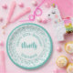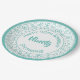 90th Party Random Number Pattern Teal/White Paper Plate