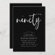 This modern, white on black design features the word "ninety" in a script style calligraphy and an elegantly spaced, modern typography comprising classical serif fonts. The invitations reverse to a delicate repeating triangle pattern in black and chromatic grey. Suitable for men or women. Choose from printed Zazzle invitations with different corner styles and gorgeous paper stock, or instant download if you need it now, or both so you can send paper and digital invites as required.