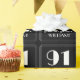 This vintage appearance and Roaring Twenties inspired birthday themed wrapping paper design features a large art deco style inspired number "91", the message "Happy 91st Birthday,", a customisable name, and a border pattern consisting of thin lines. Fun wrapping paper like this might be used when wrapping presents being given to somebody in celebration of their ninety first birthday. [~Z0000460]