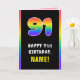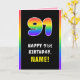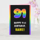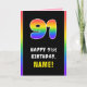 91st Birthday: Colourful Rainbow # 91, Custom Name Card