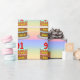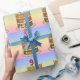This colourful and upbeat birthday themed wrapping paper design features a cartoon-style depiction of a three-tier birthday cake having number-shaped candles on top showing the age “91“, along with the message “HAPPY 91ST BIRTHDAY,”, and an editable recipient name. The background has a multicolored pastel rainbow spectrum inspired gradient pattern. Cheerful birthday themed wrapping paper like this might be used when giving a gift or present in celebration of somebody’s 91st birthday. [~Z0000622]