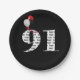 Red, white and black party balloon bouquet on black background for 91st birthday.