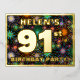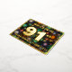The front of this joyful and exciting ninety-first birthday party/celebration foil invitation postcard design features a customisable name, a large number “91st”, the message “BIRTHDAY PARTY!”, and a border. The background of the front features an eye-catching, colourful pattern inspired by bursting celebratory fireworks. The back features personalised details about the event, such as the date, time, location/venue, and any other useful information. Customised invitations like these might be a fun way to invite guests to a birthday gathering being held to celebrate somebody’s 91st birthday. [~Z0000609]