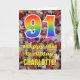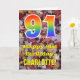 The front of this colorful, autumn-themed, and nature-inspired birthday greeting card design features a large number "91" having a rainbow spectrum gradient inspired pattern. It also features the message "Happy 91st Birthday,", and a customizable name. The background of the front of the card features a rustic fallen autumn leaves pattern. The inside features a custom birthday greeting message, or could perhaps be cleared and left blank if a message is to be written by hand instead. A custom birthday card like this might be a fun way to send birthday wishes to somebody who is celebrating their ninety first birthday. [~Z0000384]