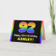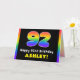 92nd Birthday: Colourful Rainbow # 92, Custom Name Card