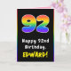 92nd Birthday: Colourful Rainbow # 92, Custom Name Card