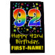This vibrant, exciting, and colourful birthday gift bag design features a large number "92" with a rainbow spectrum gradient style pattern, along with the message "Happy 92nd Birthday,", and an editable recipient name. It also has a colourful background pattern featuring star shapes of various sizes. A birthday themed gift bag like this might be a fun way to wrap a gift or present being given to somebody who is celebrating their 92nd birthday. [~Z0000510]