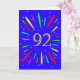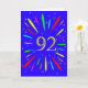 An explosive 92nd birthday card! What a wonderful way to send birthday greetings. The number 92 in bright yellow with an explosion of bright colours and stars.