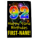 This exciting, fun, and colourful birthday gift bag design features a large number "92" with a rainbow spectrum gradient inspired pattern, along with the message "Happy 92nd Birthday,", and an editable recipient name. It also has a colourful background pattern inspired by the appearance of bursting celebratory fireworks. A fun gift-bag like this might be used when wrapping presents being given to somebody in celebration of their ninety second birthday. [~Z0000509]