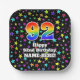 92nd Birthday: Fun Stars Pattern and Rainbow “92” Paper Plate