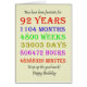 92nd birthday card counting down the years, days, months, hours, and minutes. A card to give pause for thought! Leap years have been taken into account!