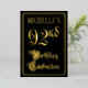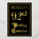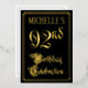 The front of this elegant, ornate, foil ninety-second birthday party/celebration invitation design features the message “92nd Birthday Celebration” in opulent script-style text. It also has a custom name. The background of the front is coloured black by default (although it can be customised to a different colour). The back features personalised details about the event, such as the date, time, location, and any other information that may be relevant. Fancy, luxurious, customisable invitations like these might be used to invite guests to a birthday celebration being held to celebrate somebody’s 92nd birthday. [~Z0000589]
