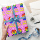 This upbeat and fun 92nd birthday-themed wrapping paper design features a large number "92" having a colourful rainbow spectrum inspired gradient pattern. It also features the message "Happy 92nd Birthday,", followed by a personalised name. The background features a pattern of dark pink and light pink stripes containing loving pink heart shapes. Wrapping paper like this might be a fun way of wrapping a birthday present or gift being given to somebody who is celebrating their ninety second birthday. [~Z0000415]