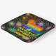 This bold and fun birthday paper plate design features a large number “93” with a colourful rainbow spectrum inspired gradient pattern, along with the message “HAPPY 93rd BIRTHDAY,”, and a customisable name. The background of the front has a vibrant, colourful pattern inspired by bursting celebratory fireworks. Paper plates like this might be used when celebrating somebody’s ninety third birthday. [~Z0000604]