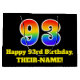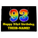 This vibrant and fun birthday-themed giftbag design features a large number "93" with a rainbow spectrum gradient inspired pattern, along with the message "Happy 93rd Birthday,", and a personalised name. It also has a black-coloured background. A birthday themed gift bag like this might be a fun way to wrap a gift or present being given to somebody who is celebrating their ninety third birthday. [~Z0000521]