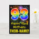 93rd Birthday: Fun Fireworks Pattern + Rainbow 93 Card