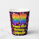 This fun and colourful birthday paper cup design features a large number “93” having a rainbow spectrum gradient inspired pattern. It also features the message “Happy 93rd Birthday,”, and an editable name. The background features a pattern of heart shapes with colours like red, purple, and pink. Loving, upbeat paper cups like this might be fun to have at a birthday celebration/party being held to honour somebody’s 93rd birthday. [~Z0000548]
