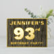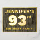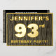 The front of this bold ninety-third birthday party/celebration foil invitation card features a personalised name, a large number “93rd”, the message “BIRTHDAY PARTY!”, and a border, all in foil. There is a rustic, yet elegant, faux wood grain appearance inspired pattern for the background of the front. The back features personalised details about the event, such as the date, time, location/venue, and any other useful information. Customisable invitations like these might be used to invite attendees/guests to a birthday gathering being held to honour somebody’s 93rd birthday. [~Z0000598]