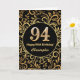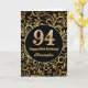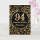 94th Birthday Black and Gold Floral Pattern Card