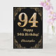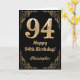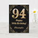94th Birthday Black and Gold Glitter Frame Card