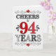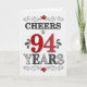 94th Birthday Cheers in Red White Black Pattern Card