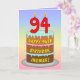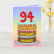 94th Birthday — Fun Cake & Candles, w/ Custom Name Card