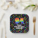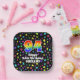 This colourful and fun birthday-themed paper plate design features a large number “94” having a rainbow spectrum gradient inspired pattern. It also features the message “Happy 94th Birthday,”, and a customisable name. The background features a multicolored star field inspired pattern. Paper plates like this might be used at a birthday party for somebody who is celebrating their ninety fourth birthday. [~Z0000582]
