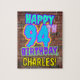 This fun birthday themed puzzle design features the message “HAPPY 94TH BIRTHDAY,” having a colourful, vibrant, graffiti and urban street art inspired appearance, in addition to an editable recipient name. The background features a pattern inspired by the look of a brick wall. A fun, personalised birthday puzzle like this might be a fun way to send a birthday greeting message to somebody who is celebrating their ninety-fourth birthday. [~Z0000532]