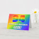 The front of this fun and colourful birthday themed greeting card design features a large number “94” with a multicolored rainbow spectrum inspired gradient pattern, along with the message “HAPPY 94th BIRTHDAY,”, and a customisable recipient name. The background on the front also has a vibrant rainbow spectrum gradient pattern. The inside has a personalised birthday greeting message, or could perhaps be cleared and left blank if a message is to be written by hand instead. A joyful, personalised birthday greeting card like this might be a fun way to send some birthday wishes to somebody who is celebrating their ninety-fourth birthday. [~Z0000585]