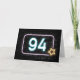 Glowing neon sign with a star on a dark brick city wall for 94th birthday.