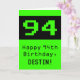 94th Birthday: Nerdy / Geeky Style "94" and Name Card