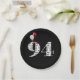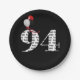Red, white and black party balloon bouquet on black background for 94th birthday.
