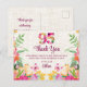 95 Years Flowers Floral Linen 95th Birthday Thanks Postcard