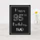 The front of this elegant 1920s/1930s art deco inspired birthday greeting card design has the message “Happy 95th Birthday,” along with a custom recipient name. The number “95th” on the front has a fancy lined styling, and there is also a multi-line border. The inside has a customised birthday greeting message, or could perhaps be cleared and left blank if a message is to be written by hand instead. A luxurious, customisable birthday greeting card like this might be sent to celebrate somebody’s ninety-fifth birthday. [~Z0000640]
