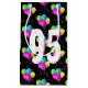 Colourful 95th birthday balloon bouquets with party confetti on black background.