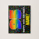 This colourful and fun birthday themed jigsaw puzzle design features a large number “95” with a multicolored rainbow spectrum inspired gradient pattern, along with the message “HAPPY 95th BIRTHDAY,”, and a custom recipient name. The background has an exciting pattern of music notes having various colours and sizes. An upbeat, customisable birthday puzzle like this might be given to celebrate somebody’s ninety-fifth birthday. These might be extra special for a music-themed birthday party. [~Z0000608]