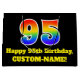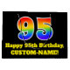 This colourful and fun birthday gift bag design features a large number "95" having a rainbow spectrum gradient inspired pattern. It also features the message "Happy 95th Birthday,", and an editable name. The background is coloured black. A birthday themed gift bag like this might be a fun way to wrap a gift or present being given to somebody who is celebrating their ninety fifth birthday. [~Z0000521]