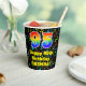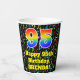 This joyful and colourful music themed birthday paper cup design features a large number “95” having a rainbow spectrum gradient inspired pattern. It also features the message “Happy 95th Birthday,”, and a custom name. The background features a colourful music notes and symbols pattern. Colourful, vibrant paper cups like this might be fun to use at a birthday celebration being held to celebrate somebody’s 95th birthday. [~Z0000541]