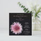 This gorgeous 95th birthday party invitation features a giant pink and white gerbera daisy flower on a black background. Simply an elegant and stunning way to invite guests to a 95th birthday party. Copyright henishouseofpaper