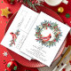 A beautiful red cardinal is framed by an elegant winter wreath. it is decorated with red flowers and berries along with pinecones. This timeless watercolor design features trendy calligraphy to give it a modern vibe. It's the perfect way to invite friends and family to a special occasion.