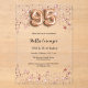A modern, stylish and glamourous invitation for a 95th birthday party. A clear, transparent background with rose gold stars. The name is written with a hand lettered style script. Personalise and add your party details. Number 95 is written with a balloon style font, script.
