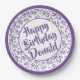 This over-the-hill design has a purple and white random number pattern with a purple milestone number 95 repeated in varied sizes and angles. There is a white circle in the centre for your text and purple-and-white rings around the rim.
