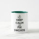 This mug is made for the modern day Napoleonic Reenacting group that portrays the 1st Battalion of the King's 95th Regiment of Foot, known as The Rifles in the United States. This mug can be either 11oz or 15oz and has the dark green accent s the represent the green uniforms of the 95th and has our motto "Keep Calm and Fix Swords" on the front. Perfect for any "Green Jacket's" morning cup of Earl Grey!