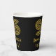 This vintage look and Roaring Twenties inspired birthday themed paper cup design features a large art deco inspired appearance number “96”, plus the birthday greeting message “Happy 96th Birthday,” and a customizable name. The background is colored black. Vintage look paper cups like this might be fun to use at a party in honor of somebody’s ninety-sixth birthday. [~Z0000546]