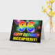 The front of this colorful, cheerful, and fun birthday greeting card design features a large number "96" and the message "HAPPY BIRTHDAY,", both colored with a rainbow spectrum gradient inspired pattern, along with a bold yellow personalized recipient name. The front also features a multicolored background pattern inspired by the appearance of bursting celebratory fireworks. The inside features a customizable birthday greeting message, or could perhaps be cleared and left blank if a message is to be written by hand instead. A colorful customizable birthday card like this might be a fun way to send a message celebrating somebody’s ninety sixth birthday. [~Z0000471]