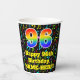 This cheerful and exciting music themed birthday paper cup design features a large number “96” with a rainbow spectrum gradient inspired pattern, along with the message “Happy 96th Birthday,”, and a customisable name. The background features an exciting and colourful pattern of various music notes and symbols having a variety of colours and sizes. Vibrant, colourful paper cups like this might be fun to have at a birthday party/celebration being held to honour somebody’s 96th birthday. [~Z0000541]