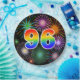 This colourful, cheerful, and fun paper plate design features a large number "96" having a rainbow spectrum gradient inspired pattern colouring. It also features a vibrant and exciting bursting celebratory fireworks inspired pattern. It has a black coloured background. Paper plates like this might be fun to use at a party being held to celebrate somebody’s ninety sixth birthday, a ninety sixth anniversary, or some other 96th event. [~Z0000490]